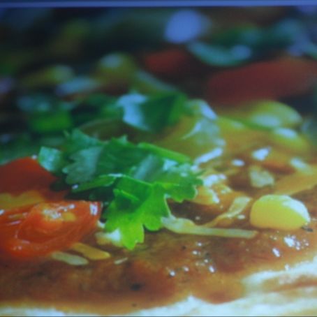 Bake pizza dough for 20-25 minutes at 350*F. Add salsa, peppers, and half each cheese. Bake 10 minutes.