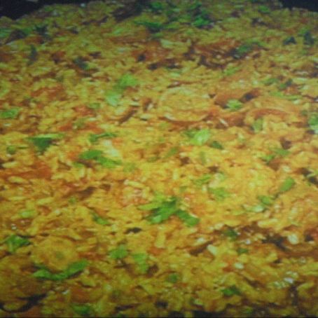 Cook rice. Saute onions and garlic until caramelized. Add celery and peppers, cook 3 minutes.