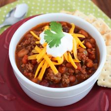 Combine all ingredients except sour cream and chips, simmer 40 minutes. Add sour cream the last 5 minutes to avoid sauce breaking.