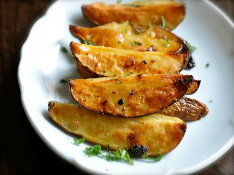 - 8 large potatoes, peeled, cut into large wedges (about 6-7 wedges per potato)