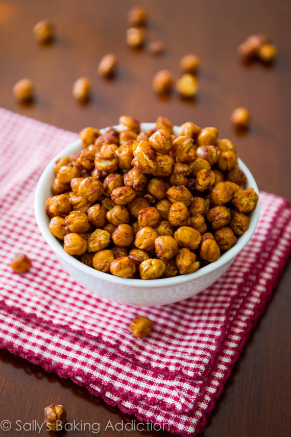 Leaving the chickpeas inside, turn the oven off and crack open the door slightly. Allow the chickpeas to sit inside as the oven cools down for 30 minutes. This will help them get crunchier as opposed to sitting at room temperature. Chickpeas are crunchiest on day 1. Store at room temperature.