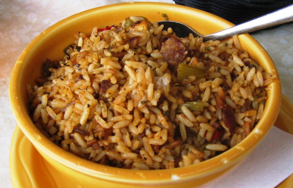Heat oil and chicken until they start to brown. Add onion, celery, green and red pepper, and garlic until onion is soft. Stir in thyme, cayenne. Stir all together.