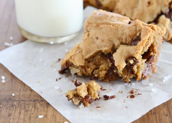 Bake cookie bars for 30 minutes or until the top of the bars are light golden brown and the edges start to pull away from the pan. Cool bars on a wire rack to room temperature. Cut bars into squares and serve.