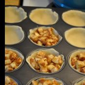 I found that pinching the edge of the dough around the top edge of the tin and making a hammock of sorts worked really well. You can then gently fill the crusts with your apple mixture and push the crusts down the rest of the way.