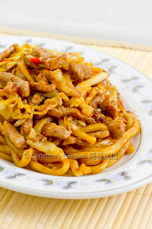 Heat 1 1/2 tablespoons oil in the wok When the oil is hot add the noodles Stirfry quickly stirring to coat the noodles in the oil and make sure they don't stick to the pan Add the hoisin sauce again tossing to coat the noodles Taste and add salt and or soy sauce as desired Add the cooked chicken and cabbage Add the spring onion and stir to heat through Serve hot