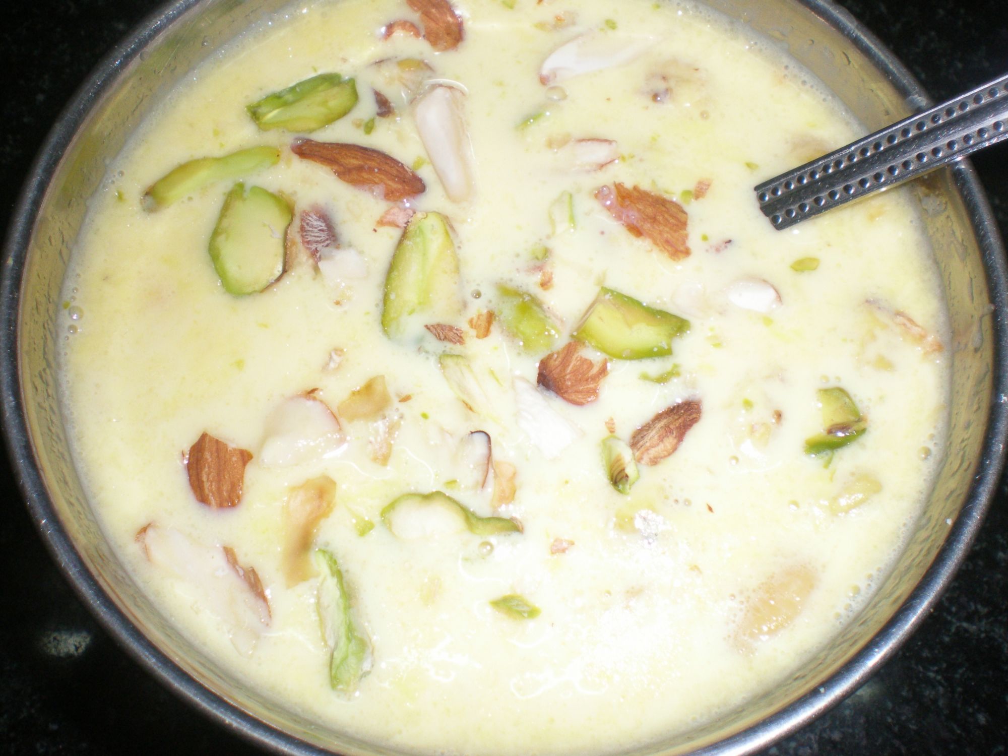 - The Rice kheer is ready to be served chilled by garnishing a bit with chopped almonds and cardamom powder.