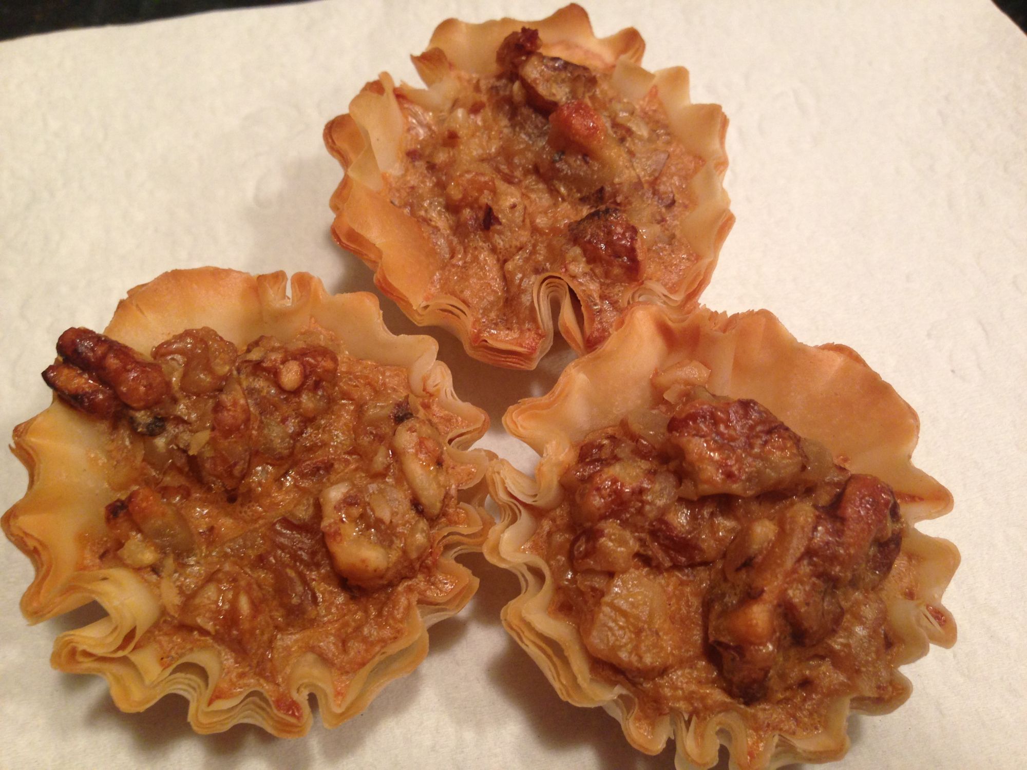 **I used Athens brand phyllo (also spelled "filo") shells. They come in a pack of 15 and can be found in the frozen aisle. They are perfect for guilt-free eating, as they are only 25 calories for a 2-piece serving! What a great "skinny" find!