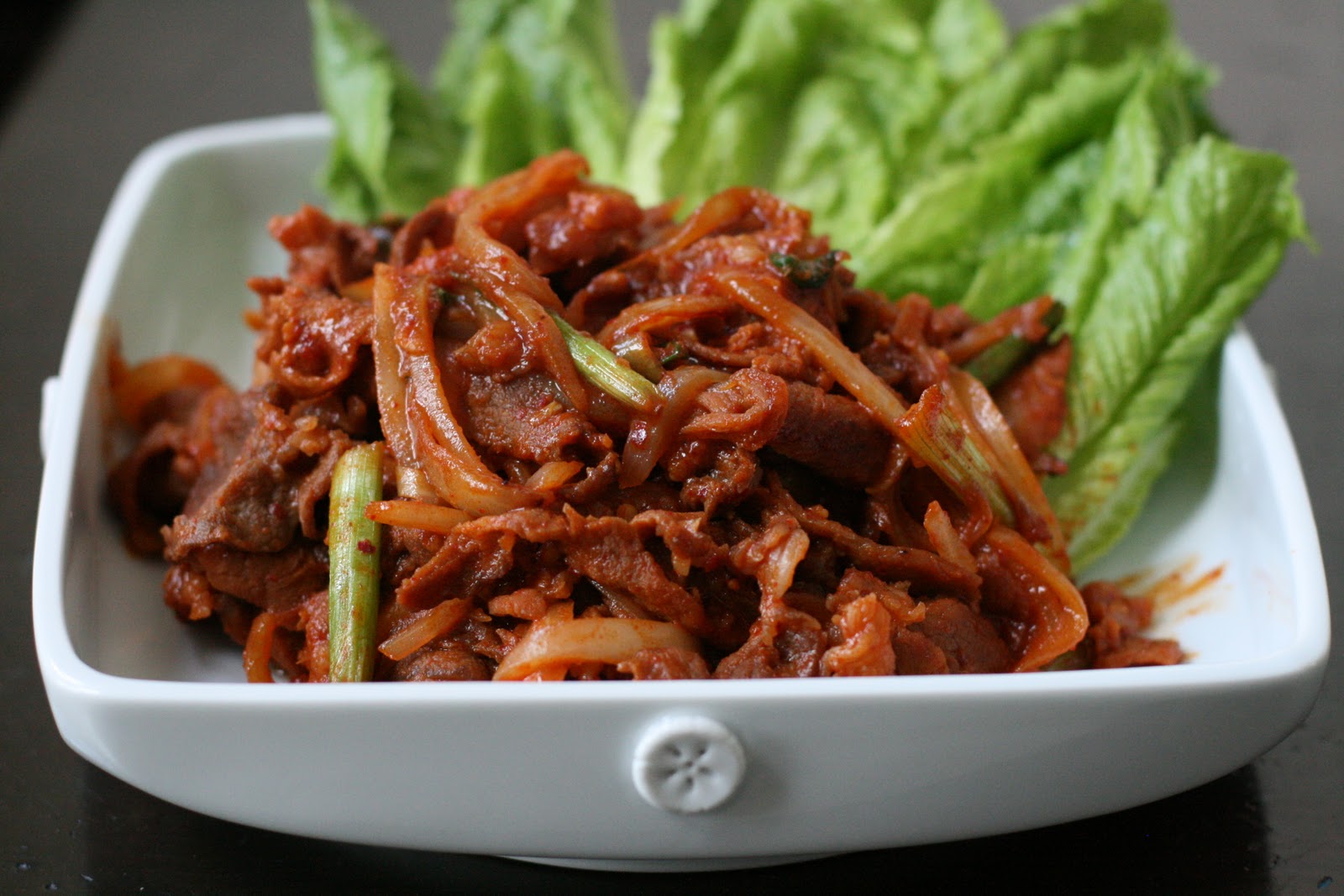 In a 12-inch skillet, heat olive oil over medium heat. In three batches, brown pork and onion, 3 to 5 minutes per batch. Discard marinade.