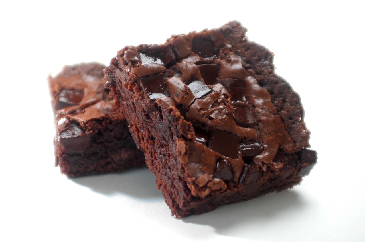 5. Cool completely in pan on a rack, at least 1 hour. Lift brownie out on parchment, peel off parchment, and set brownie on a board. Cut into 8 squares or wedges or 16 triangles.