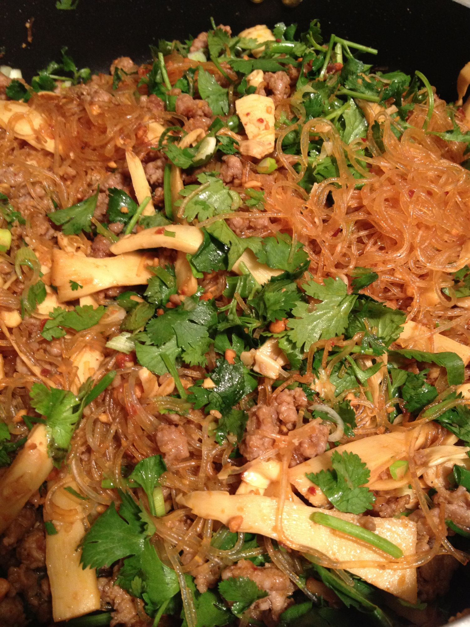 Cellophane Noodles with Bamboo Stir Fry-Peev Choj