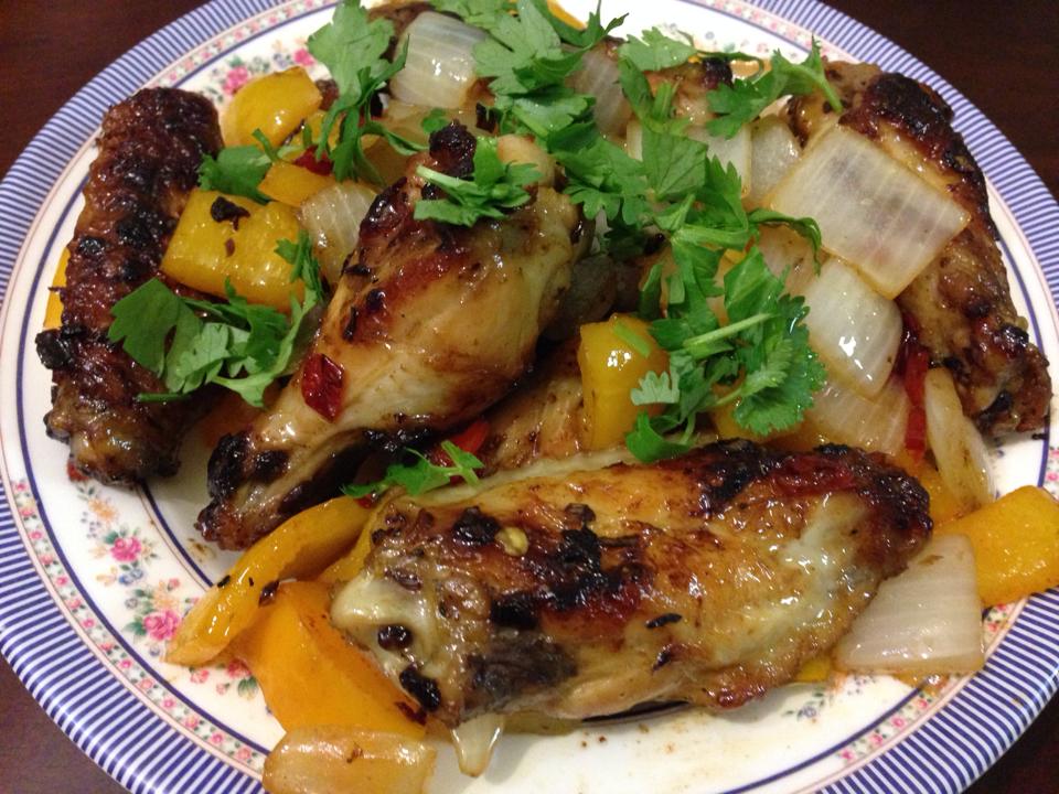 marinade the wings in garlic (minced), soy sauce (about 1/4 cup for every dozen wings), lemongrass (minced), salt & black pepper; leave it overnight in the fridge or let sit for at least 4 hrs. before cooking.
