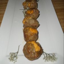 - Layer cheddar, blue, and mozarella cheese inside the bread