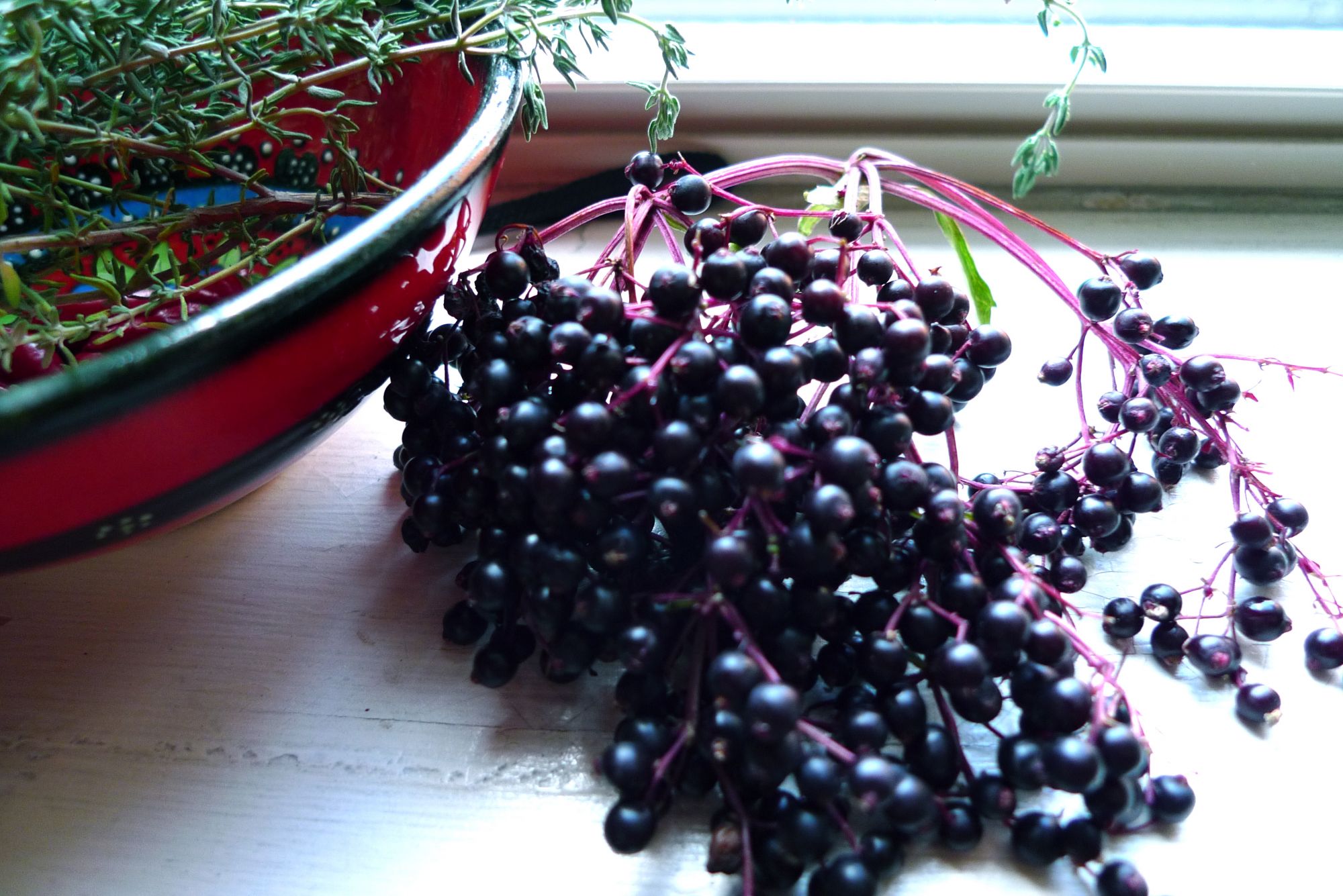 Crush the elderberries and pour over the boiling water. Stir well and leave to stand for 24 hours, then strain through a fine sieve or cloth into a saucepan.
