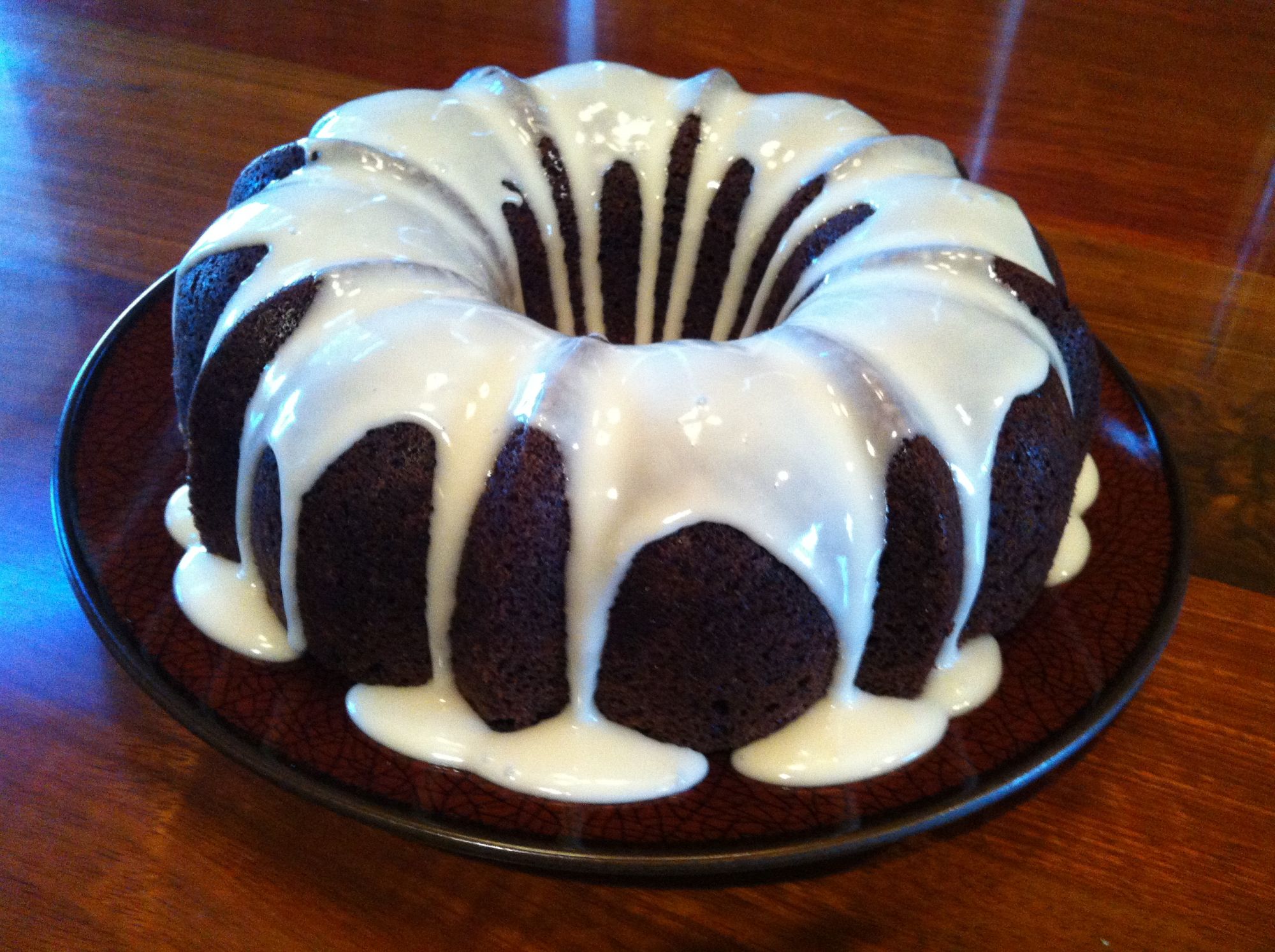 Pour the batter into a greased and flour-dusted 10 inch bundt pan or tube pan.