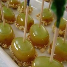 Slide onto kabob stick a green grape. Slide onto kabob stick a thinly sliced piece of banana. Slide onto kabob stick a strawberry with the top sliced off. Slide onto the kabob stick a small marshmallow.