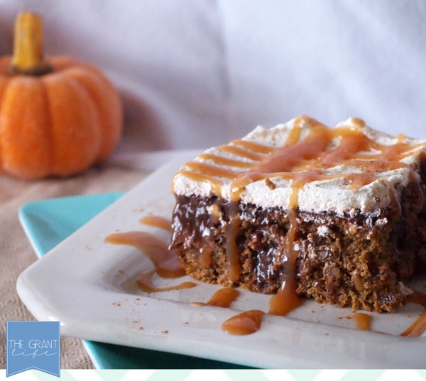 2.Pour batter into a greased 9×13 baking dish, and bake at 350°, according to the directions on the cake mix box (approx 23-28 mins).