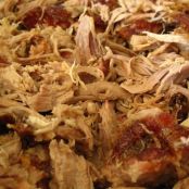 You can now "pull" the meat! I just use a couple of forks (it's hot hot hot!) in a shallow roast pan. Top with your favorite BBQ sauce, or try my Lip Smackin' BBQ Sauce!