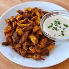 Mince garlic and combine with mayonaise and water to form a sauce.
