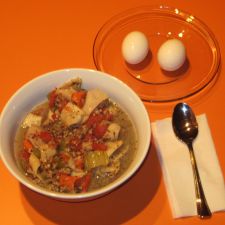 In a large pot, pour in rice, water, bouillon cube, green onions and turkey. Add soy sauce, salt and pepper to taste. Cook over medium heat.
