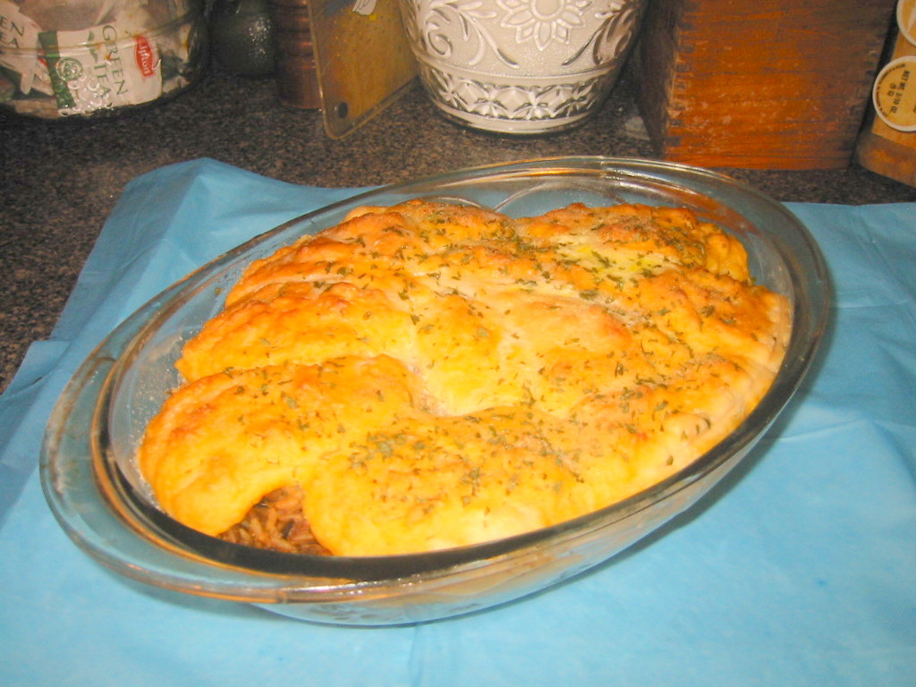 Add 1 box Uncle bens wild rice mix (as prepared per its instructions) to the finished sausage mixture prior to the biscuit topping - stretches the recipe by 2 times. Just be sure the baking dish still holds it all.