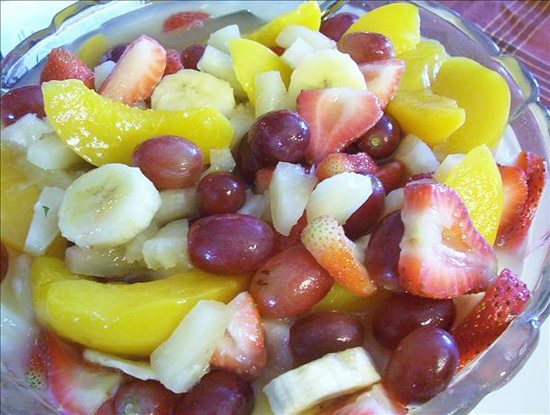 Mix well until pudding is dissolved. Stir in strawberries, banana, blueberries, grapes, and sugar if desired. Chill.