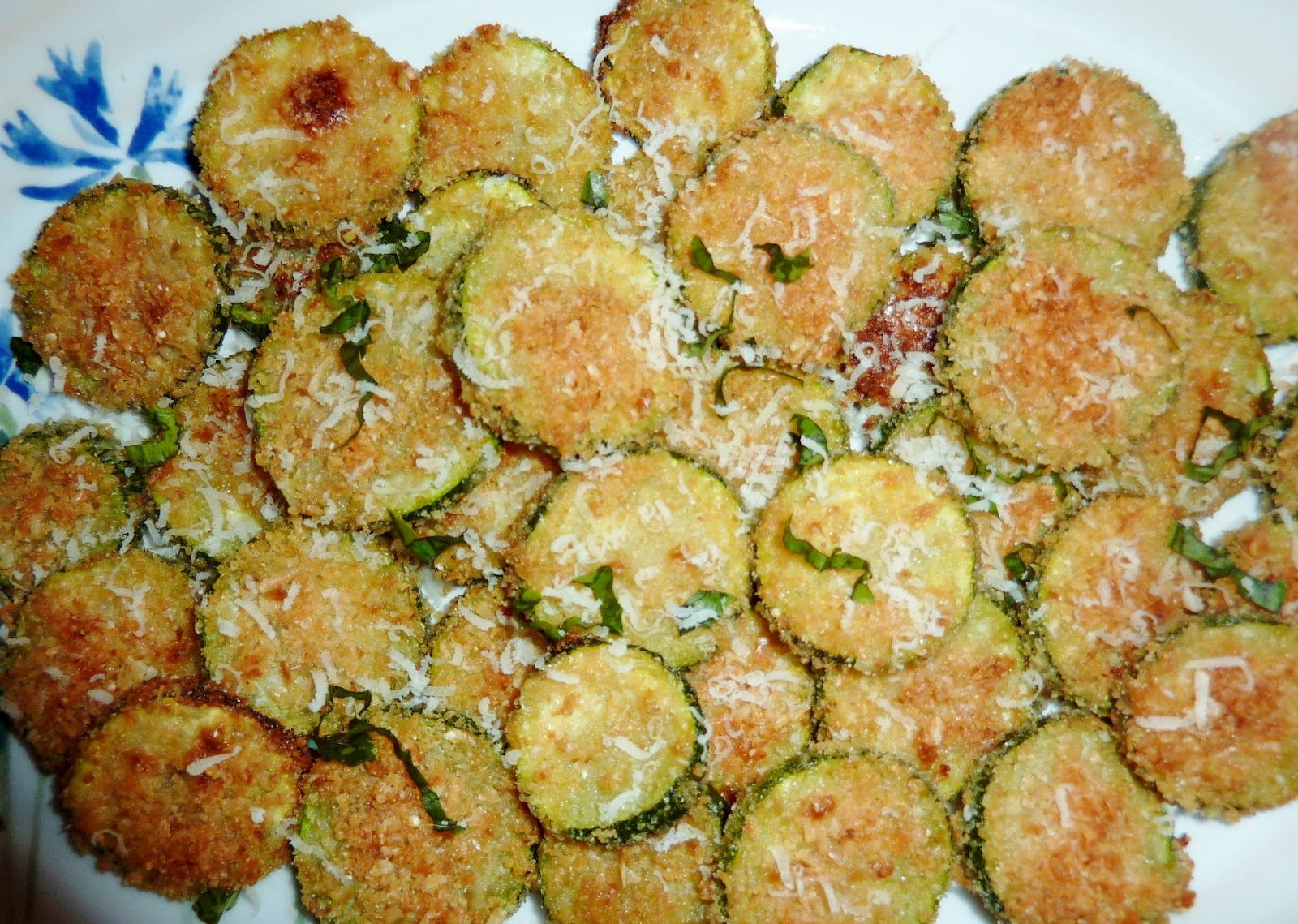 Bake the zucchini rounds until browned and crisp, 25 to 30 minutes. Remove with spatula. Serve immediately.