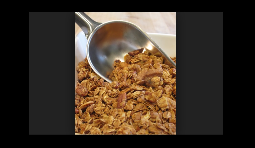 When the granola is cool, break it up into chunks. This can be stored for up to two weeks in an airtight container.