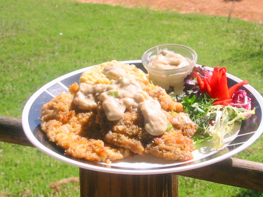 1. In a small shallow bowl, combine bread crumbs and parsley. In another shallow bowl, combine mustard and garlic. Spread one side of each pork chop with 1/2 teaspoon mustard and coat in crumbs. Repeat with other side.