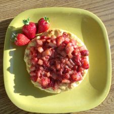 cut up strawberries...cut up pound cake... Mix strawberries an sugar and let it set...
