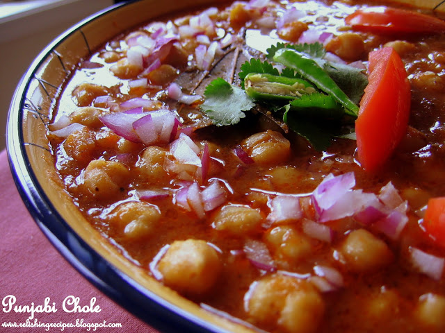 Garnish the Punjabi chole with freshly chopped cilantro and serve with halved lemons.