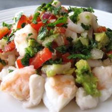 Chop up scallops, shrimp and squid/octopus. Add to fish