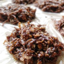 Put wax paper on table. Melt chocolate bark over low heat, stirring constantly. When melted pour mix nuts in and stir until covered. Then drop by tsp. onto the wax paper. When cooled and set put in container with lid.
