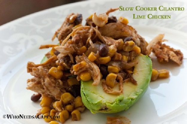 Origionally found at www.http://whoneedsacape.com/2013/08/slow-cooker-cilantro-lime-chicken/