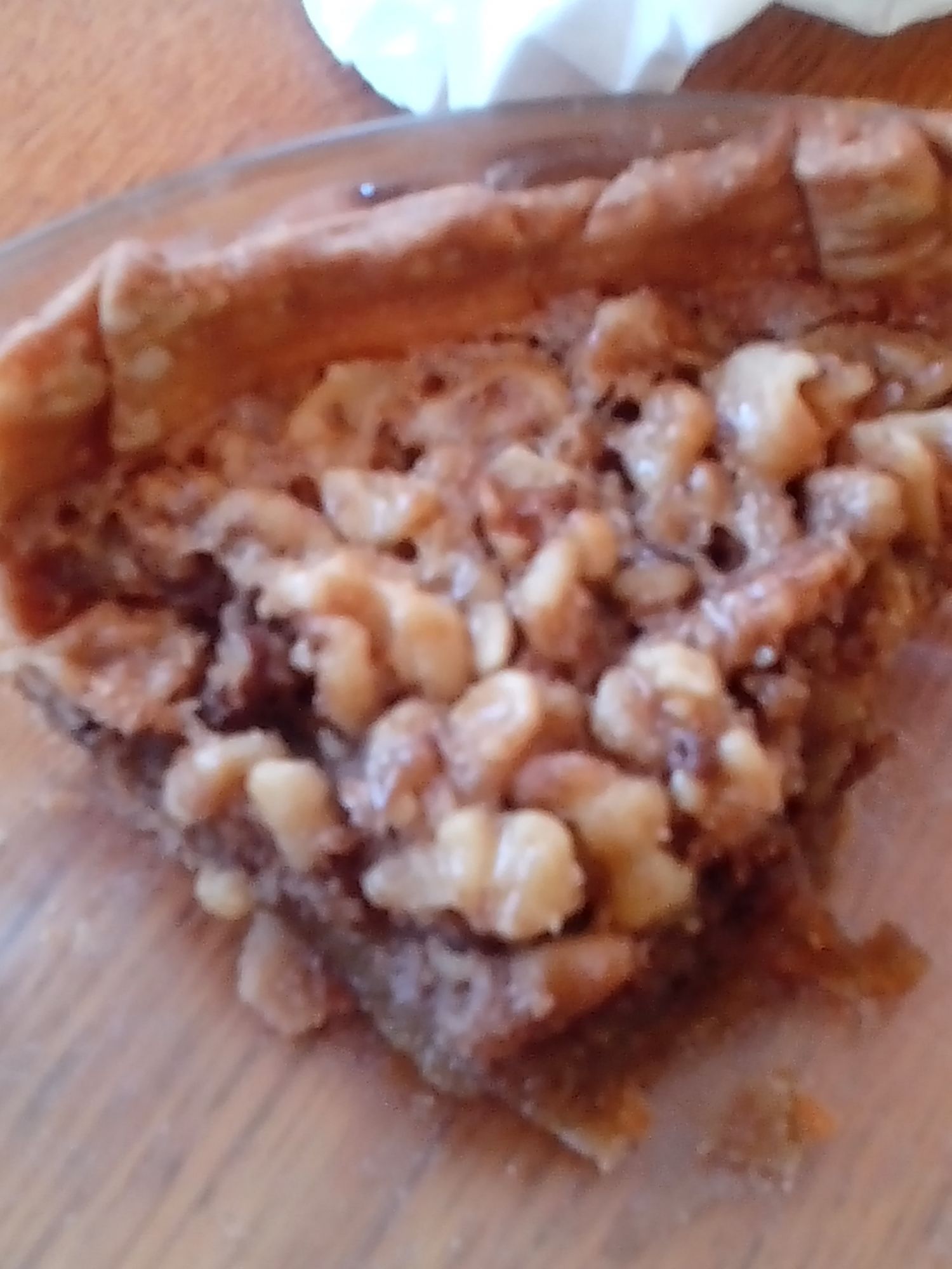 This is a delicious pie that you can substitute walnuts for pecans. I have cut out half a cup of sugar out of the original recipe to make it less sweet. The walnuts are better than the pecans, less sweet with a wonderful nutty flavor.