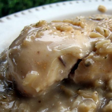 Pour over top on can cream mushroom soup plus ½ can of water.