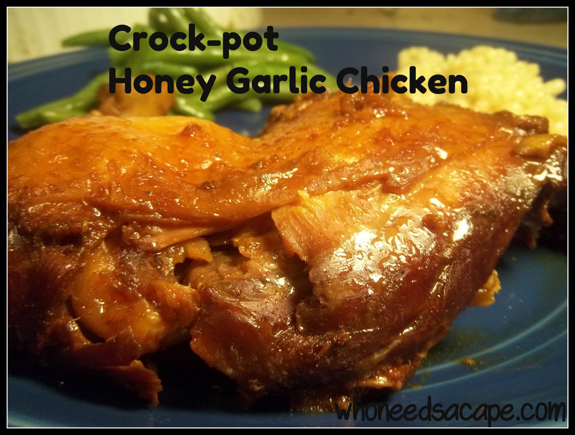 Orignally found at www.http://whoneedsacape.com/2013/02/crockpot-honey-garlic-chicken/