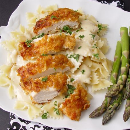 Crispy Chicken with Creamy Italian Sauce and Bowtie Pasta