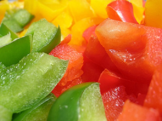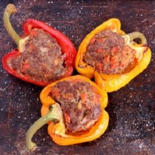 cut top of peppers off and remove non eatable parts. chop the top of the peppers to use in the pan. in a pan add oil and heat add chopped garlic, chopped pepper, onion, spice with mint, salt, paprika, saute until tender.
