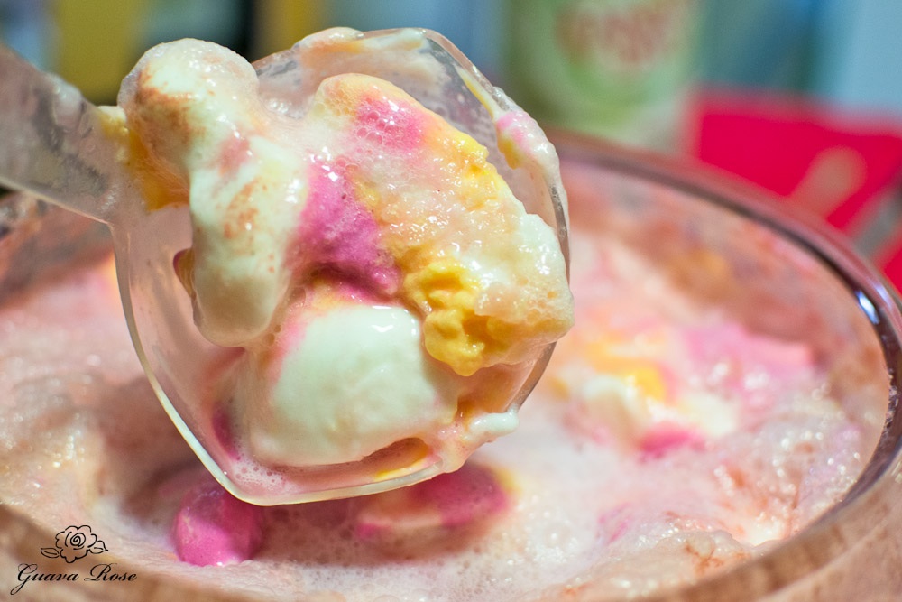 In a large punch bowl combine all the juices. Add ginger ale. Spoon in sherbet. Serve immediately. Serves 40.