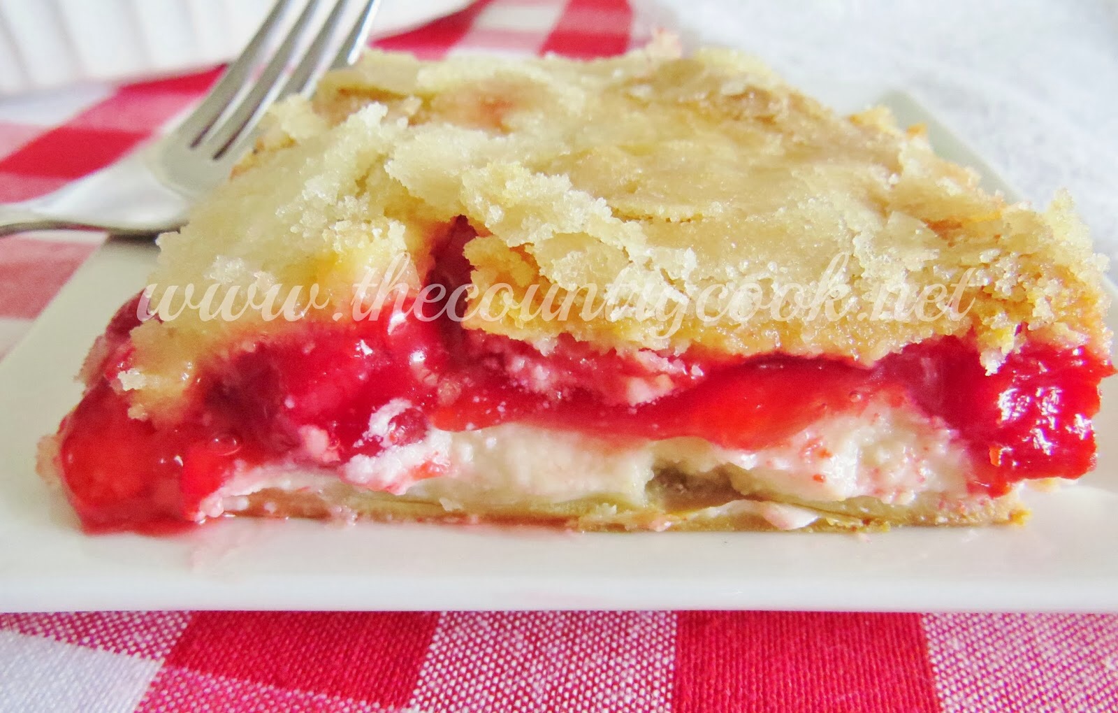 - Then pour pie filling on top of cream cheese layer. Spread it around evenly.
