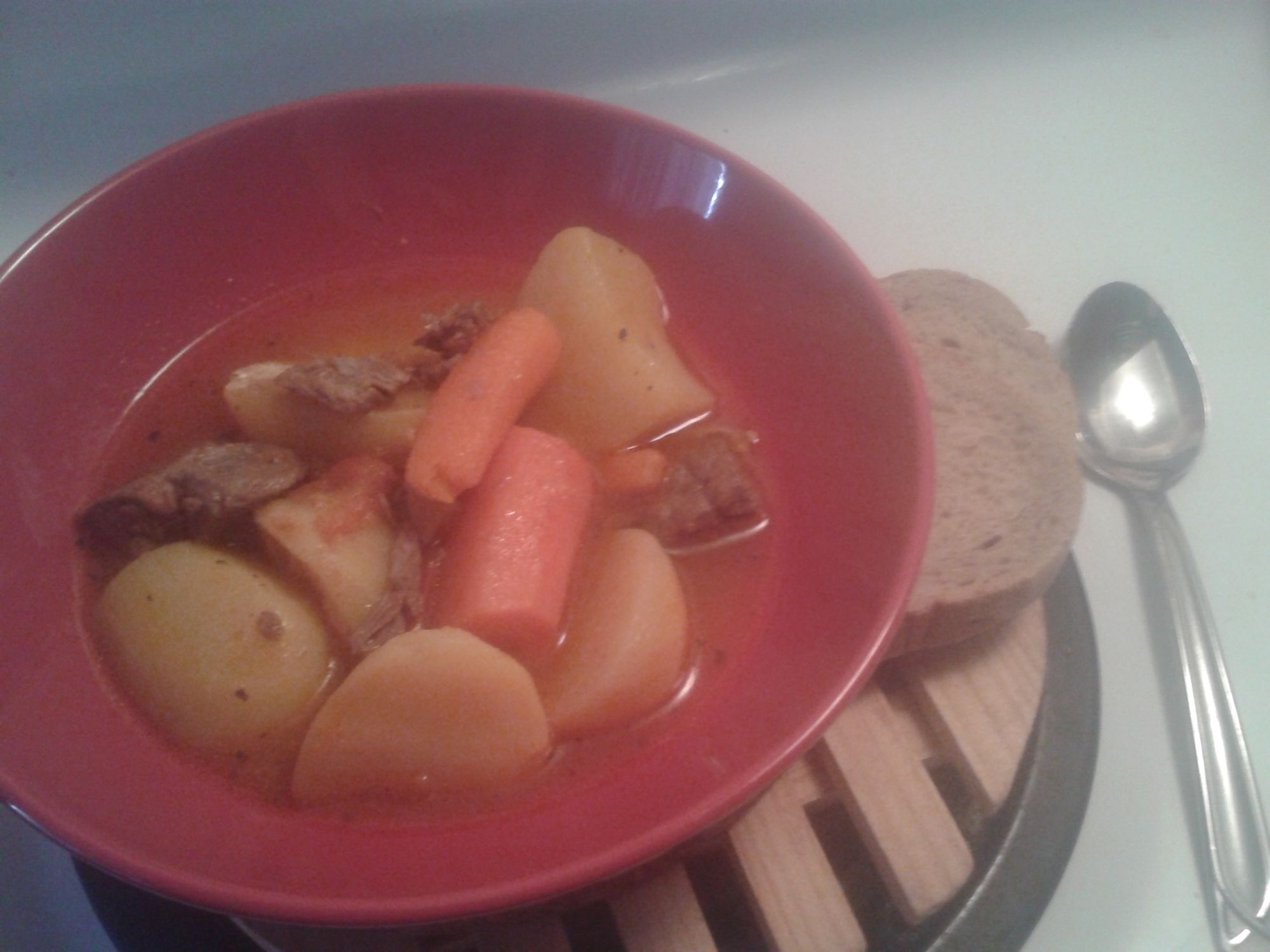 Add ketchup, majoran, carrots & potatoes. Coom for another 20 min until potatoes and carrots are soft.