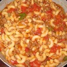 - Add the ground beef, and add the salt, water, and tomato sauce. When the meat has browned, remove from heat.
