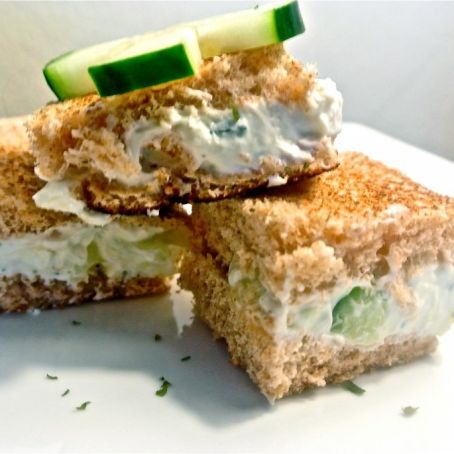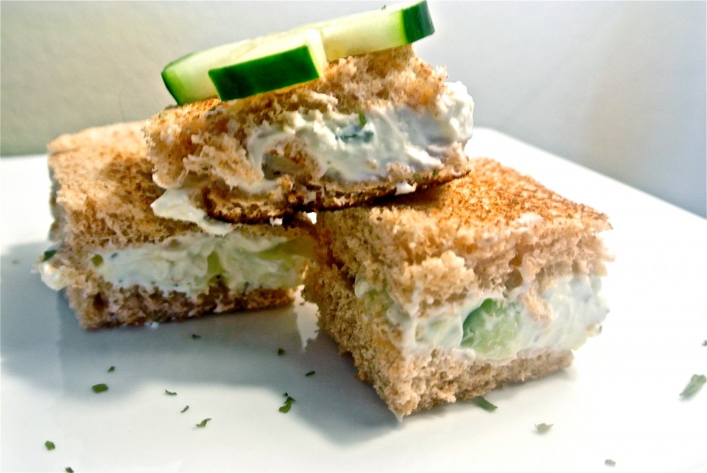 In a medium-sized bowl mix together all ingredients except bread. Next, toast all pieces of bread until golden brown and then cut off the crust. Build sandwiches by spreading a generous amount of mixture onto 4 pieces of the bread. Place the additional bread on top of each to form a sandwich. Cut each sandwich into 4 squares.