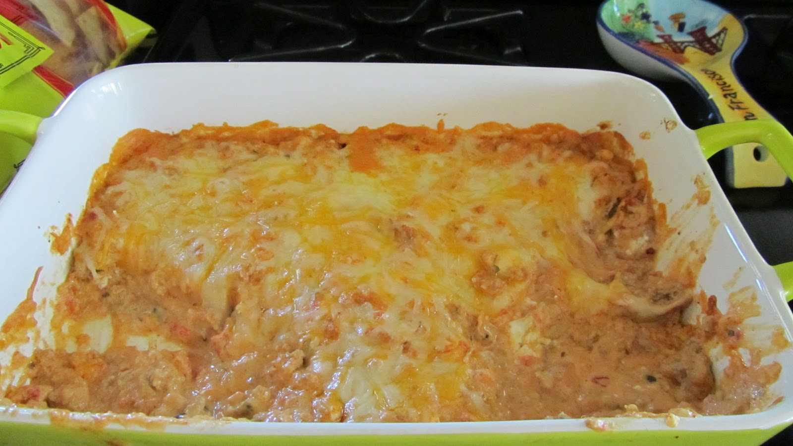 If desired, do not bake and add a layer of chopped lettuce and layer of chopped tomatoes. Serve with dipping chips.