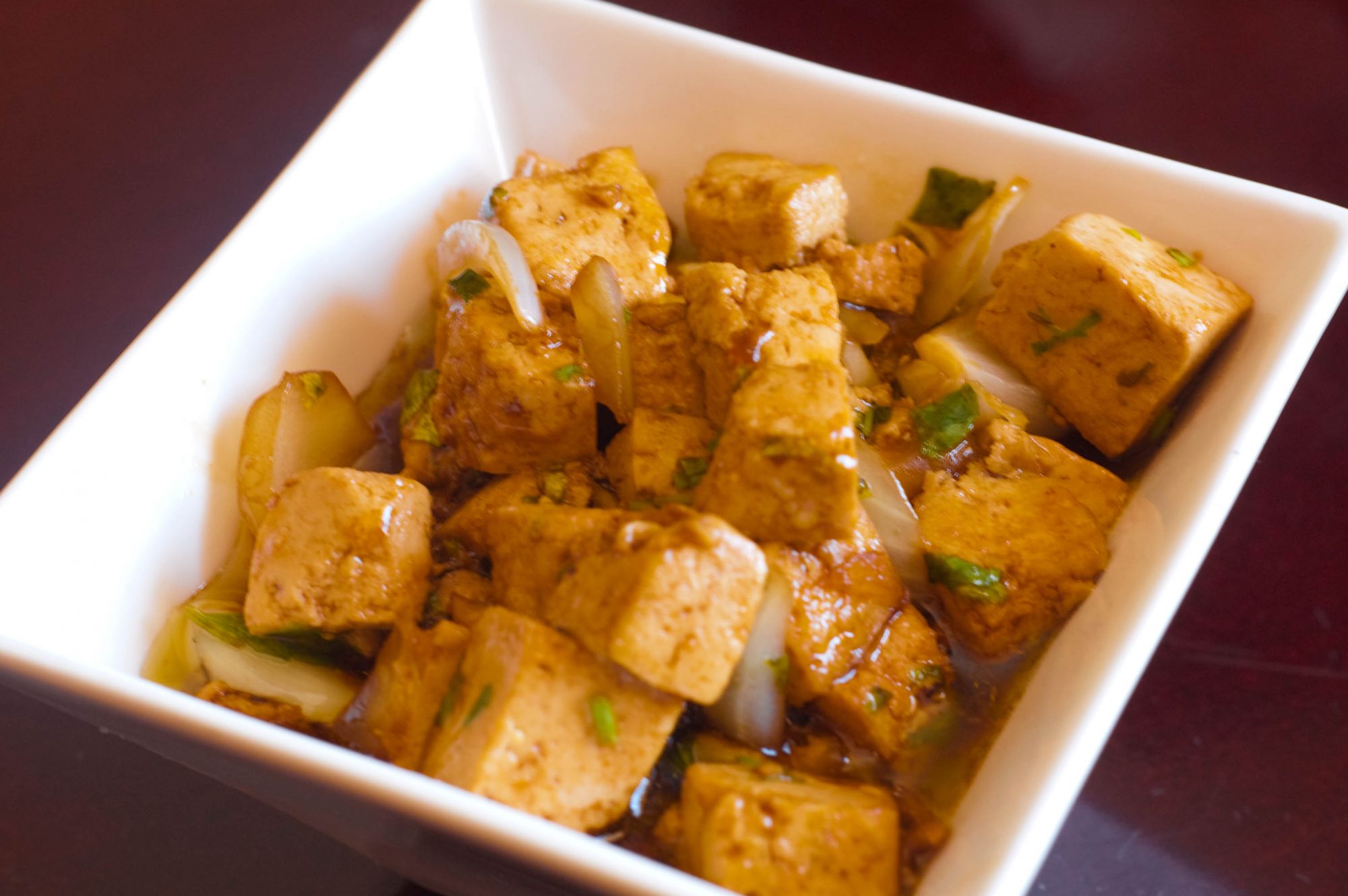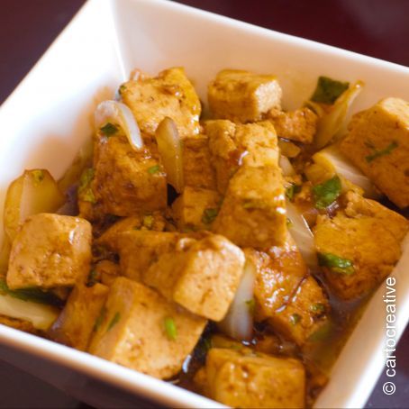 Cut tofu into 2cm cubes. Fry the tofu in oil on both sides until golden brown. Remove and keep.