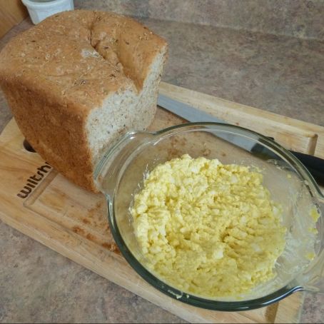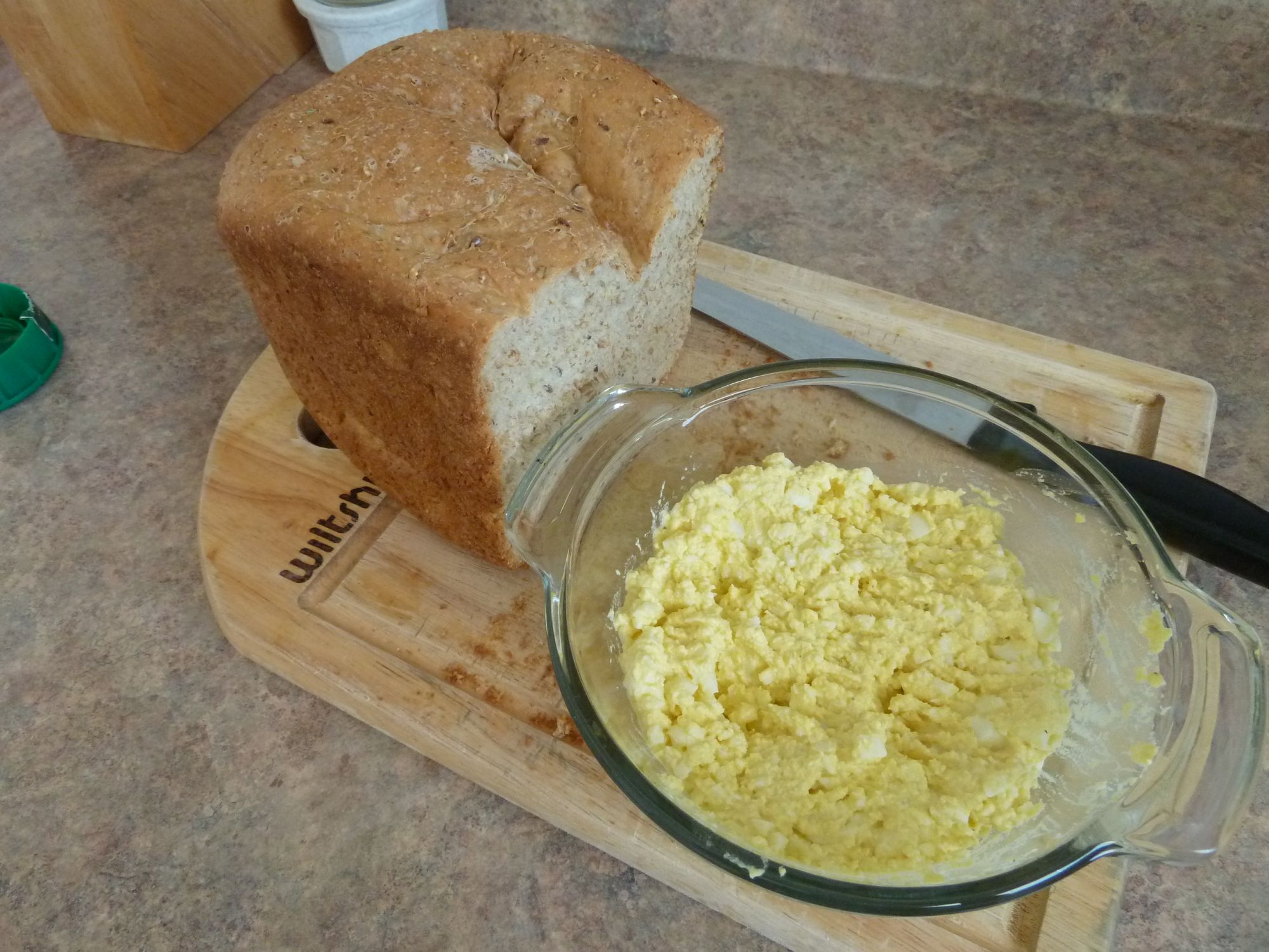 Add the mustard and creamy garlic & cheese dip/dressing (see my recipe) and mix well.