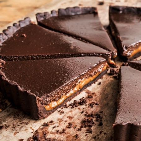 Spread the dulce de leche over the hot tart shell in an even layer, being careful as you spread to make sure you don’t break the flaky bottom of the tart. (If the dulce de leche is very thick, let it sit in the tart shell for a minute or so, to let the heat soften it, which will make it easier to spread.) Pour the chocolate custard over the dulce de leche, smooth the top, and add a generous sprinkling of flaky sea salt.