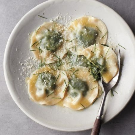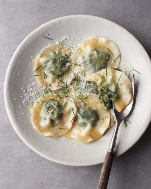 Melt 1 tablespoon butter in a medium skillet over medium heat. Add chickweed, deadnettle, and wild garlic greens and cook until bright green and softened, about 2 minutes. Transfer to a food processor and pulse until finely chopped. Season with a pinch each of salt and pepper. Transfer to a medium bowl and fold in ricotta and Parmesan with a rubber spatula. Let cool.