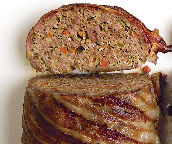 Bake the meatloaf in a 350°F oven for 1 hour, or until the internal temperature of the meatloaf reaches 155°F. Let rest for 10 minutes. Then gently remove by lifting with a spatula to a serving plate, and slice to serve.
