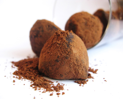 With 2 teaspoons or a 1 1/4-inch ice cream scoop, make dollops of the chocolate mixture and place on a baking sheet lined with parchment paper. Refrigerate for about 15 minutes, until firm enough to roll into rough spheres. Roll the chocolate in the chopped hazelnuts and chill again.
